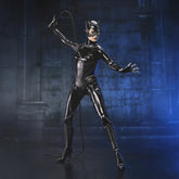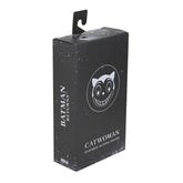 Inspirée du film culte Batman Returns (1992) réalisé par Tim Burton, avec les traits de Michelle Pfeiffer, dont l’interprétation emblématique continue de marquer l’histoire du personnage. Avant de devenir Catwoman, Selina Kyle menait une existence discrète en tant que secrétaire du puissant industriel Max Shreck. Après avoir découvert les plans secrets de ce dernier pour détourner l’énergie de Gotham City, elle est poussée par la fenêtre pour être réduite au silence. Survivant miraculeusement à sa chute et entourée de chats errants, Selina renaît et révèle sa personnalité sombre et déterminée sous l’identité de Catwoman. Elle s’associe alors au Pingouin pour assouvir sa vengeance contre Shreck et affronter Batman, qui tente d’empêcher leurs plans. Cette figurine à l’échelle 8 pouces (environ 20 cm) est entièrement articulée et porte des vêtements en tissu sur mesure, inspirés des gammes de jouets vintage. Elle est accompagnée de plusieurs accessoires emblématiques, dont son fouet, un taser, des mains interchangeables et une tête alternative représentant son apparence finale endommagée après le combat. La figurine est présentée dans un emballage boîte-fenêtre avec fourreau, idéal pour les collectionneurs.