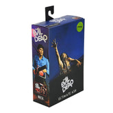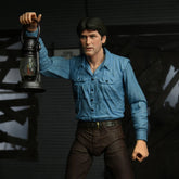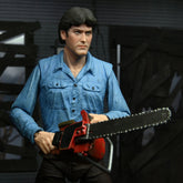 "To celebrate 40 years of the iconic cult film The Evil Dead, NECA is excited to release an 18-centimeter Ultimate Ash action figure! This figure faithfully represents Bruce Campbell and comes with three interchangeable heads, a chainsaw , an axe, a shotgun, a lantern, a cassette player, and much more! It comes in a special 40th anniversary display box, with an opening flap inspired by the style of the classic VHS release. These figures are not children's toys. Intended for adults only."