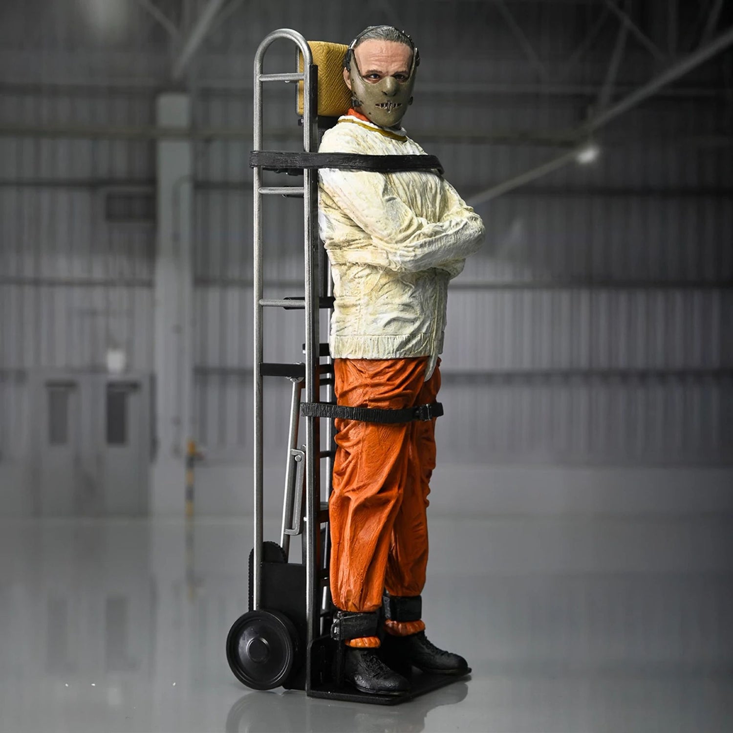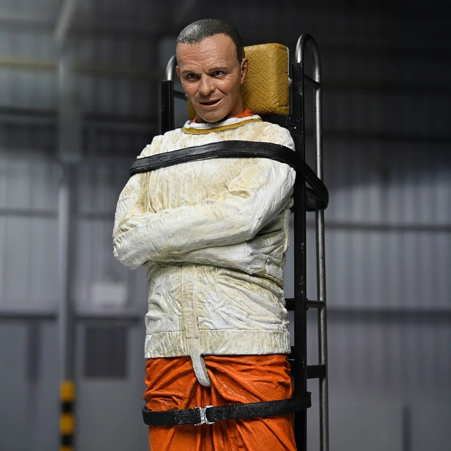 Add the iconic Hannibal Lecter to your horror movie collection! Played by Academy Award winner Anthony Hopkins, the brilliant and psychotic doctor from The Silence of the Lambs wears his signature orange prison uniform and straitjacket. This NECA figure is articulated for posing and comes with interchangeable heads, his signature mask, and a carrying accessory.