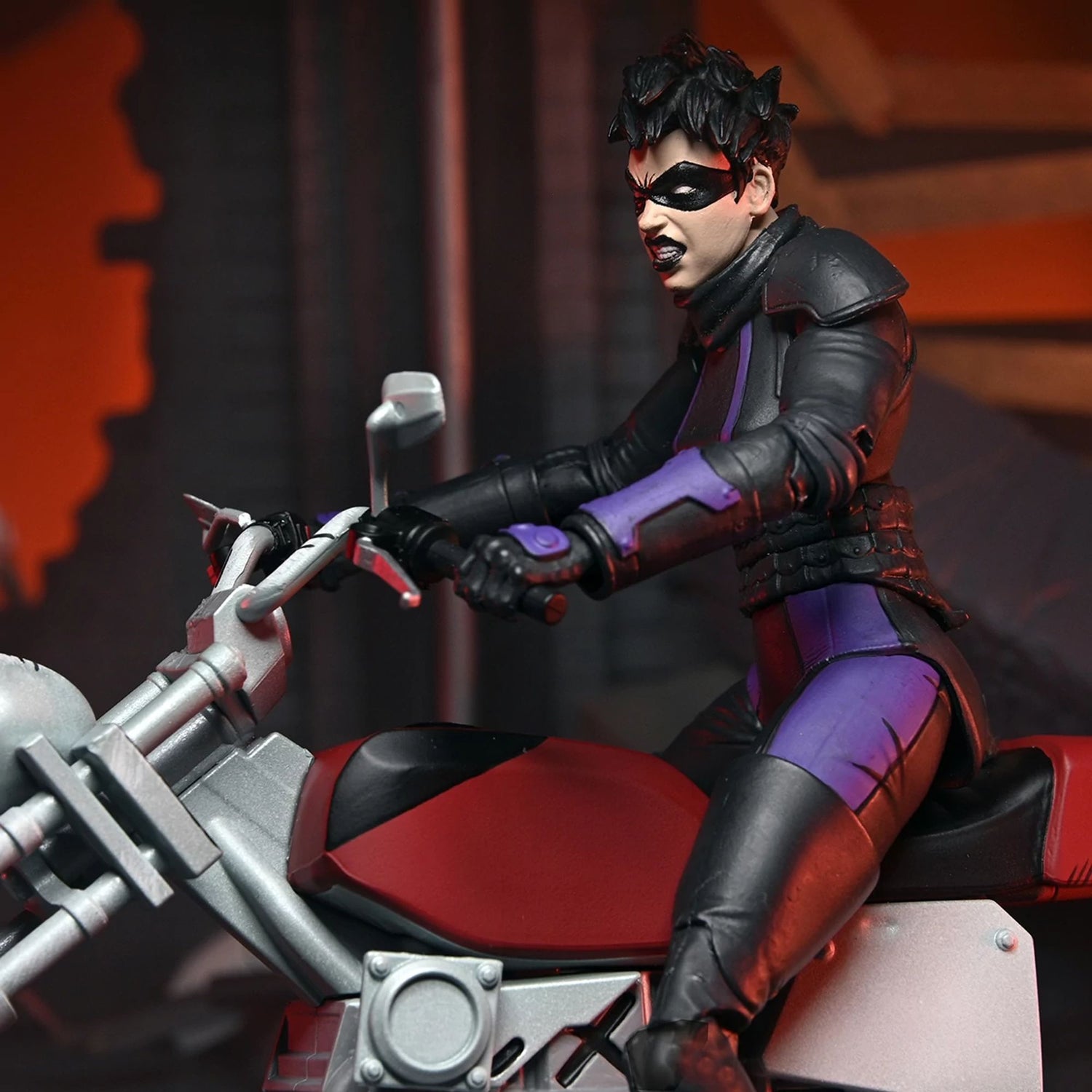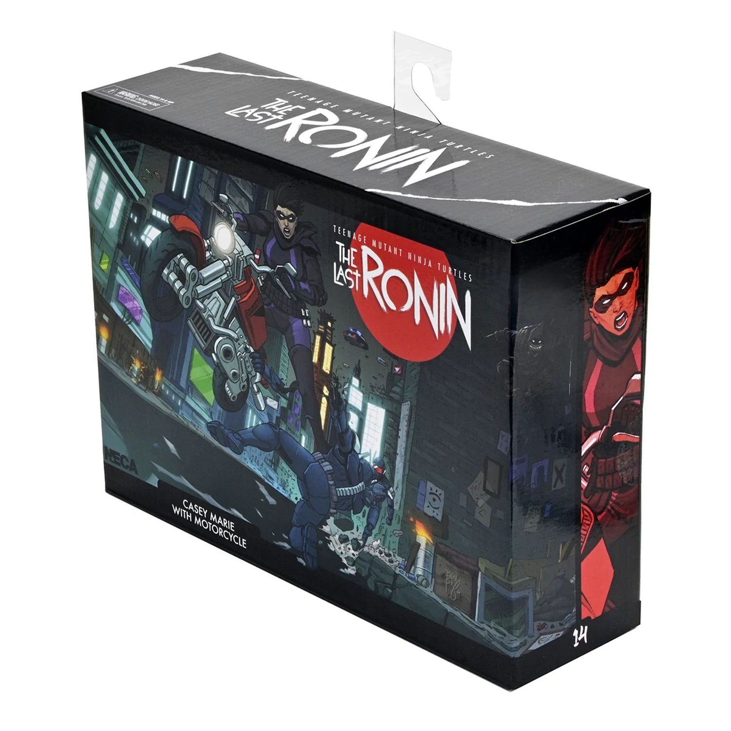 "From The Last Ronin, this Casey Marie figure enters the world of Teenage Mutant Ninja Turtles! In a New York future very different from the one we know, the last surviving Turtle sets out to find justice for his missing family and friends. Casey Marie, the determined daughter of Casey Jones and April O'Neil, is now available as a 7-inch NECA figure. She comes equipped with a fabric jacket and several interchangeable heads, representing her different looks in the comics. Her motorcycle comes with a dynamic stand for impressive poses! Presented in collector's packaging with original artwork by Ben Bishop, the artist of The Last Ronin, this figure is a must-have for fans of the Teenage Mutant Ninja Turtles universe.