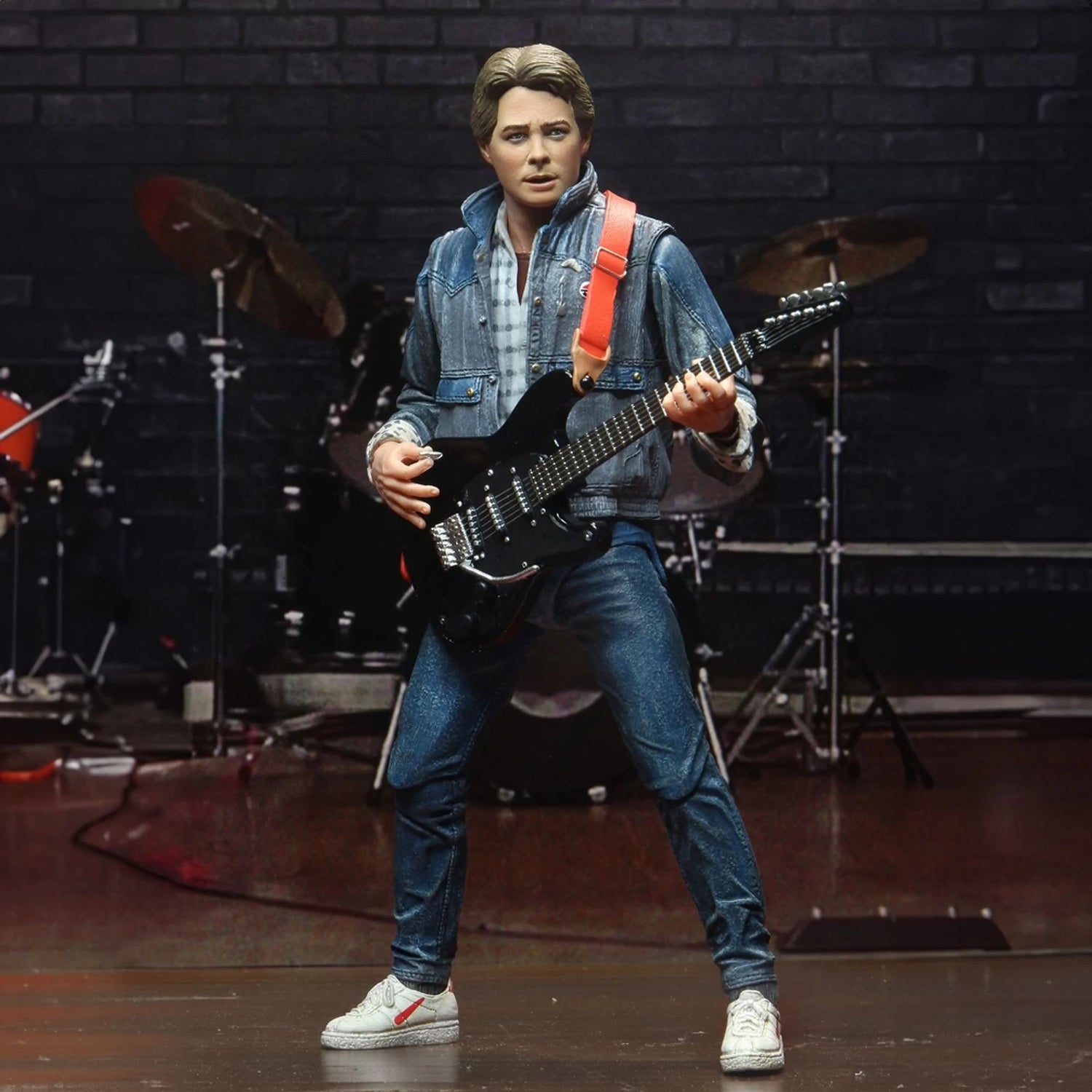 “NECA is pleased to present the Ultimate Audition Marty McFly from Back to the Future, featuring the officially licensed likeness of Michael J. Fox. This Marty McFly audition model features a new jacket sculpt without the usual vest. Plus, he comes equipped with new accessories, including an audition guitar, a disappearing hand, a cassette player and a McFly family photo. The figurine is presented in a display box packaging.