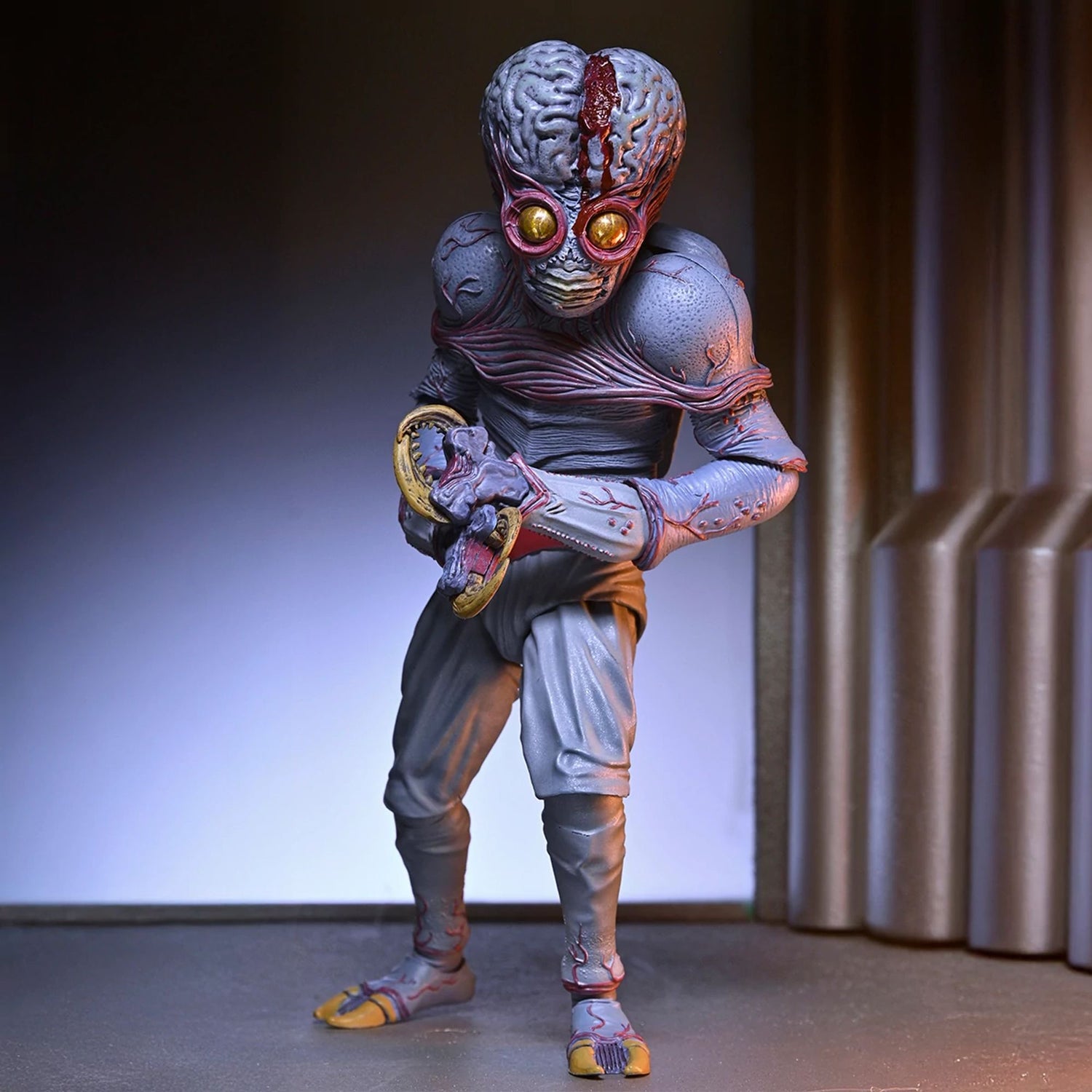 From the 1950s classic sci-fi film, The Survivors of Infinity, NECA presents the Ultimate figure of the iconic Mutant from Metaluna! Hailed for its innovative special effects and vibrant use of Technicolor, this classic follows several scientists embarking on a bizarre and suspenseful journey, embroiled in an interplanetary war. Standing approximately 8 inches tall, this Ultimate figure of the iconic monster features articulated pincers and includes a battle-damaged replacement head. It comes in a collector-friendly window box with an opening flap, perfect for displaying alongside your other Ultimate figures!